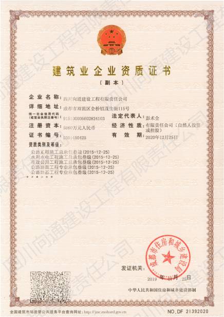 四川向通建設(shè)工程有限責(zé)任公司 四川向通建設(shè)工程有限責(zé)任公司成立于2007年,注冊資本金5060萬元,是一家專業(yè)從事瀝青混合料生產(chǎn)、專業(yè)分包以及市政道路、公路、路基工程專業(yè)施工建設(shè)的企業(yè)。公司注冊地址及生產(chǎn)廠區(qū)位于成都市雙流區(qū)金橋鎮(zhèn)茂生街115號,總占地面積約120畝;辦公地址位于雙流區(qū)海濱城海濱廣場7座11樓。公司生產(chǎn)廠區(qū)(雙流金橋)現(xiàn)有LB-5000型瀝青混合料拌合樓1套,每小時瀝青混合料生產(chǎn)量可達380噸。此外,根據(jù)項目需要,公司在多地建立4000型拌合站以服務(wù)施工(廣安齊福、達州、綿陽等),每小時瀝青混合料生產(chǎn)量為320噸。各種國內(nèi)外道路施工機械:攤鋪機、壓路機、銑刨機、灑布車、封層車、吊車、拖車、等70余臺,可滿足各種道路施工需求。公司近100輛保溫運輸車輛均安設(shè)保溫板、加塞保溫棉、覆蓋棉絮和隔熱防水雨篷,有效減少瀝青混合料在運輸過程中的溫度流失進而保證瀝青路面的施工質(zhì)量。 公司目前擁有眾多優(yōu)秀的技術(shù)人才,成熟的市場渠道,良好的企業(yè)聲譽。現(xiàn)有各專業(yè)施工人才共計79人;5支專業(yè)的施工班組可根據(jù)現(xiàn)場的具體情況制定實施性施工方案。今后公司將竭誠為各界客戶提供出色的產(chǎn)品和服務(wù)及具有競爭性的價格和具有創(chuàng)新精神的高效解決方案。 公司曾經(jīng)榮獲:新津鄧雙段被新津縣政府評為“優(yōu)良工程”;雙流宗申大道被雙流縣政府評為“優(yōu)良工程”;成都后花園被成都市政府評為“重合同守信譽單位”;被三一重工評為“有遠見單位”。并在2018年1月被中國五冶集團評為“優(yōu)秀供方”;同年3月被四川交投評為2017年度“優(yōu)秀合作單位”的榮譽。榮譽的背后是我們公司所有員工堅持不懈的努力。 作為現(xiàn)代化的企業(yè),公司將以技術(shù)為切入點,以信譽為支撐點,以市場為著眼點,促進管理創(chuàng)新和技術(shù)創(chuàng)新。因此我公司能在短時間內(nèi)迅速發(fā)展成為一家擁有各類中大型施工機械設(shè)備的公司。在今后的工作中我們將借用現(xiàn)代電子信息溝通的便利為公司的發(fā)展助力,同時將秉承發(fā)揚以往的團結(jié)拼搏精神,推動公司成為“快穩(wěn)型”發(fā)展的企業(yè)。 在未來的發(fā)展過程中,四川向通始終秉承“以質(zhì)量求生存,以信譽求發(fā)展”的企業(yè)管理理念,以“啟后為先創(chuàng)佳績,爭做路建行業(yè)標”的企業(yè)宗旨與建設(shè)單位建立合作關(guān)系,創(chuàng)造更加輝煌燦爛的明天! 四 川 向 通 建 設(shè)
